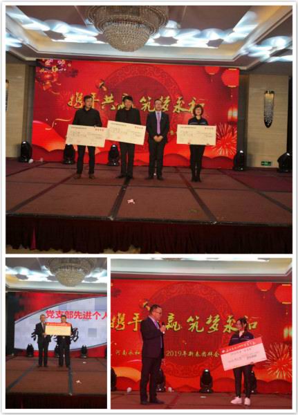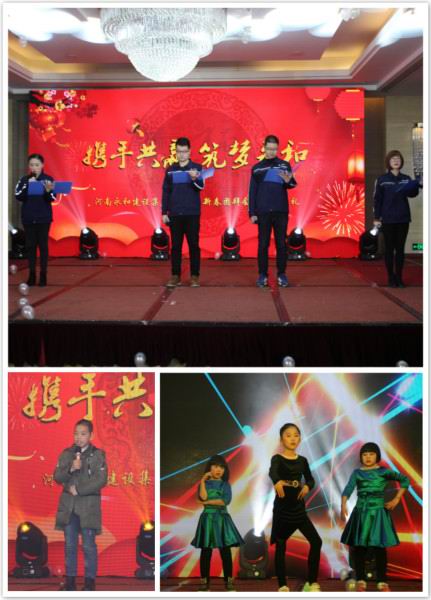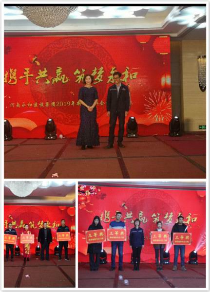 金戈鐵馬聞?wù)鞴模粻幊⑿鲁獭?019年1月26日下午,“攜手共贏筑夢永和”——河南永和建設(shè)集團2019年新春團拜會暨頒獎典禮在錦江國際酒店隆重召開,信陽市政協(xié)副主席、市工商聯(lián)主席陳豫,信陽市平橋區(qū)政協(xié)副主席陳明德、信陽市委統(tǒng) 戰(zhàn)部辦公室主任楊輝、信陽市平橋區(qū)工商聯(lián)主席張虹、商城縣、羅山縣、五里辦事處等多位領(lǐng)導(dǎo)、信陽日報社、信陽電視臺等多家媒體領(lǐng)導(dǎo)及新聞記者、河南永和建設(shè)集團有限公司全體員工及家屬、合作商,社會友人出席了本次團拜會。大家歡聚一堂,辭舊迎新、表彰、文藝展演,共同度過了振奮人心又愉快難忘的時光。