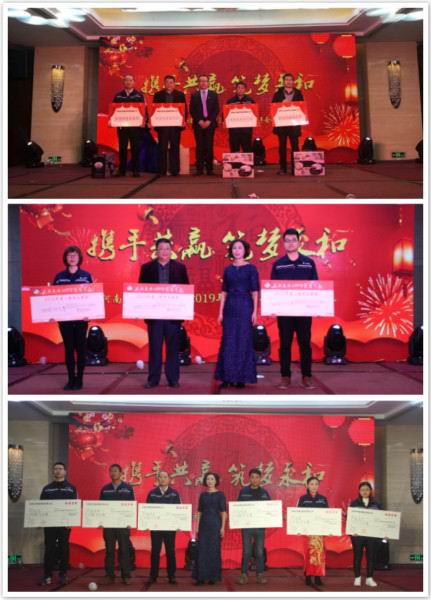 團拜會中間還穿插了抽獎環(huán)節(jié),隨著各等獎項的抽取,不斷掀起團拜會的高 潮。同時,團拜會還揭曉了2018年為永和集團作出突出貢獻的各大獎項?;鶎印⒅袑?、高層、團隊獎、特別奉獻獎、精神文明獎、合作伙伴獎、效益獎、年度黨員獎、黨支部先進個人獎等多項獎項,對永和人過去一年為公司的付出表示肯定,為永和人的來年鼓足了干勁。